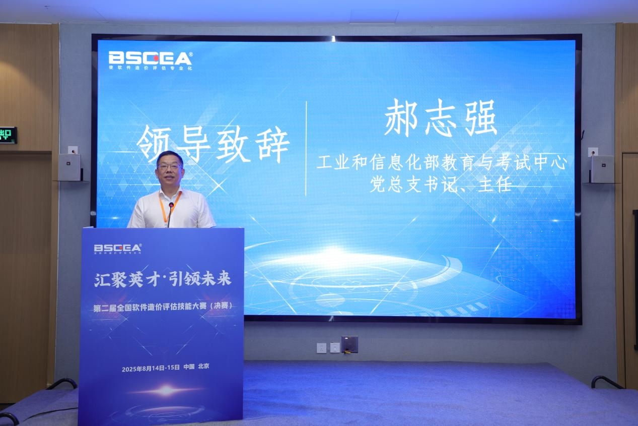 工业和信息化部教育与考试中心主任郝志强在致辞中表示,随着我国数字经济规模持续扩大,软件产业的高质量发展对专业化、标准化、规范化的造价评估提出了更高要求。软件造价评估不仅是项目成本管控的关键环节,更是优化资源配置、提升产业效率、保障行业公平竞争的重要抓手。本届技能大赛的举办,将发挥以赛促学、以赛促用,培养一批高素质、高技能的软件造价评估人才,为产业创新发展注入新动能。同时,他也提出了几点期望:一是希望参赛选手将大赛作为提升专业技能、拓宽行业视野的契机,未来成为推动软件造价领域创新发展的中坚力量。二是希望业界同仁以大赛为平台,深入探讨软件造价评估的前沿技术和方法,共同推动行业标准、规范体系的优化升级。三是希望各方以大赛为纽带,加强产学研用合作,形成人才培养、技术创新、产业应用的良性循环,助力软件产业降本增效、高质量发展。