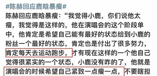 而鹿晗的另一哥们陈赫,也没袖手旁观,直播时谈及他的暴瘦,解释是靠运动跑出来的,纯粹希望紧致一点,上镜就漂亮一点,给粉丝呈现一个最好的状态。