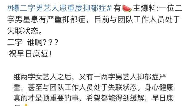 知名狗仔之前放出的“某二字男星重度抑郁”的瓜,也被翻出来。