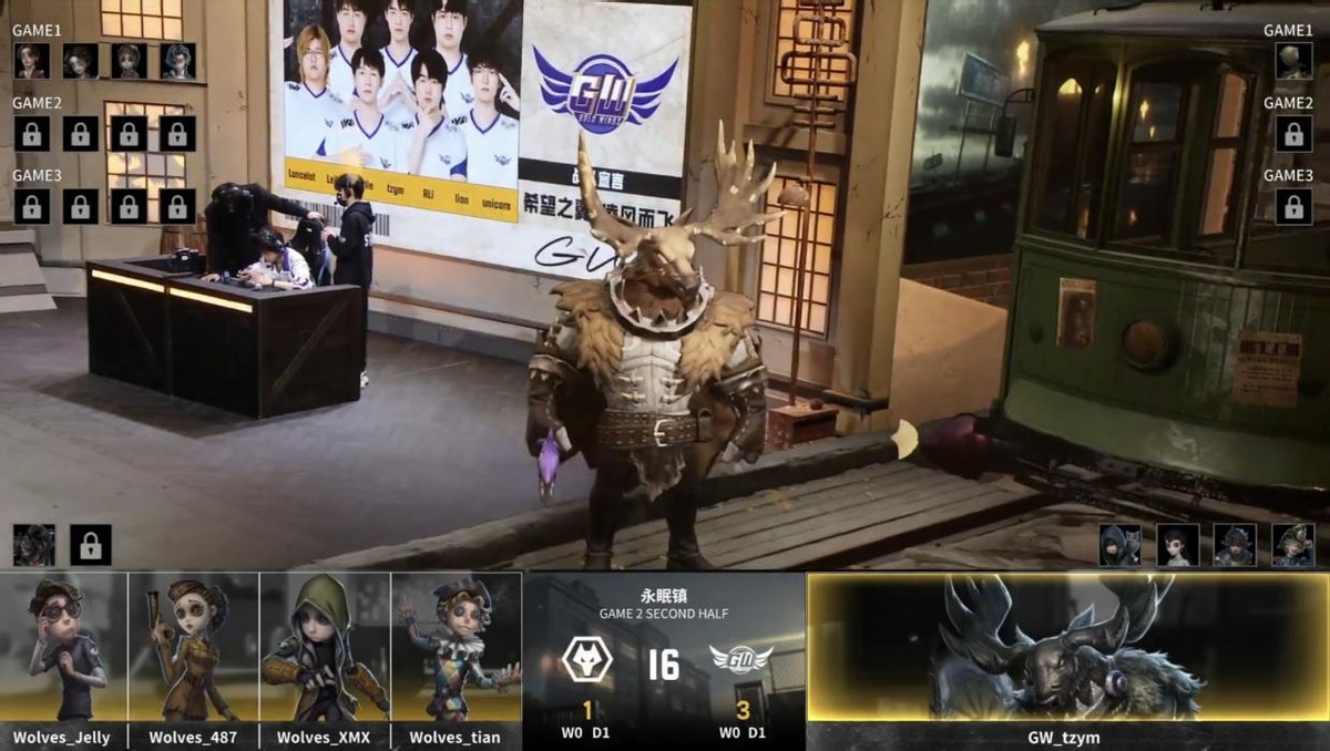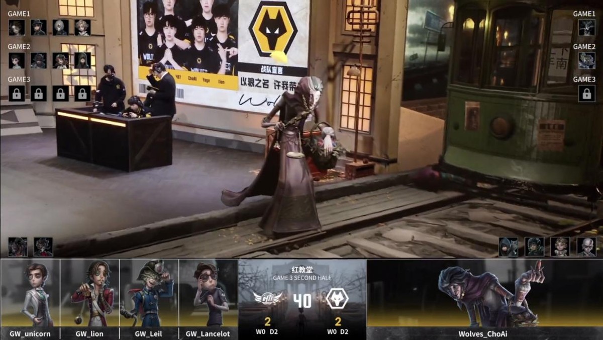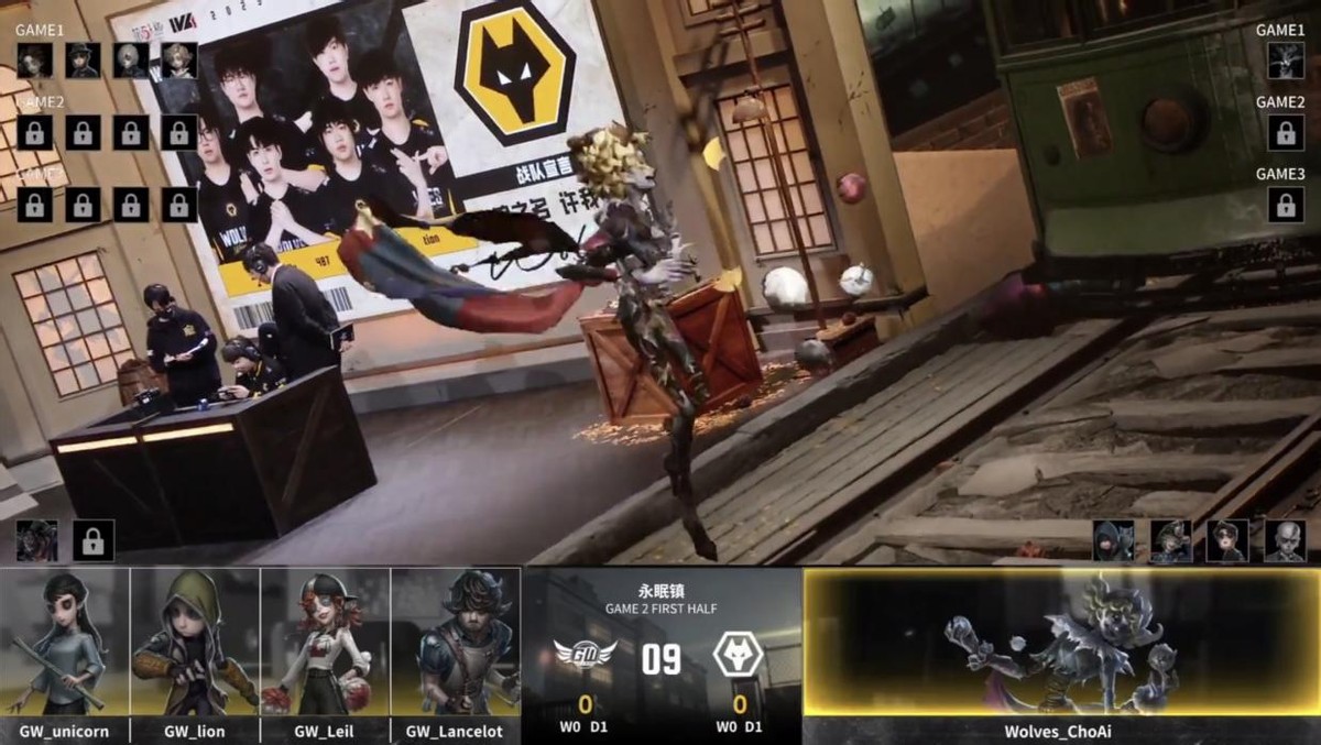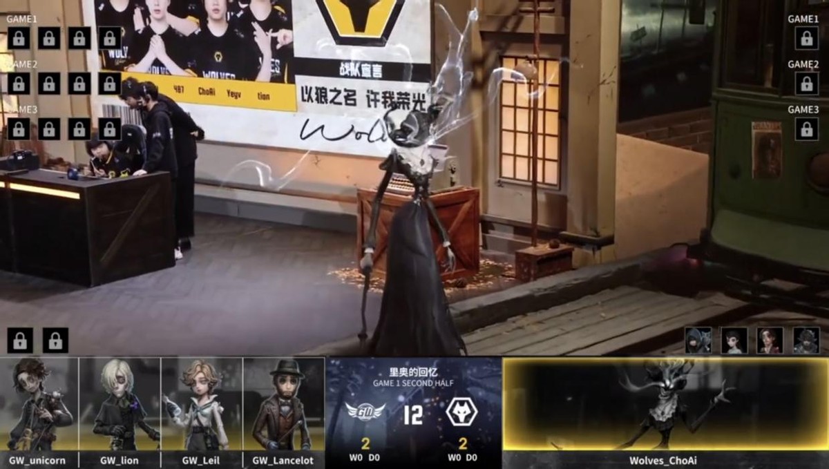 GW的求生者选择了“囚徒”、入殓师、野人、画家(BAN“跛脚羊”、隐士);成都Wolves的监管者ChoAi选择了歌剧演员。(BAN先知、冒险家、弓箭手、“骑士”)