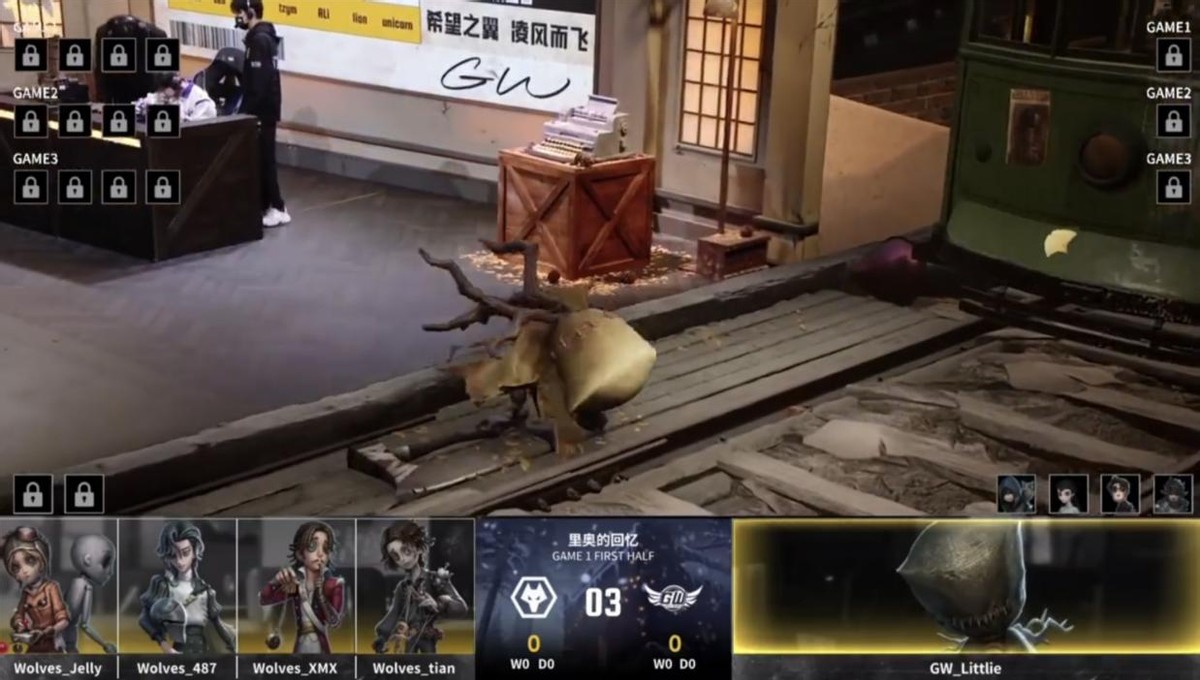 GW的求生者选择了小说家、大副、火灾调查员、幸运儿(BAN“跛脚羊”、歌剧演员);成都Wolves的监管者ChoAi选择了杂货商。(BAN先知、前锋、杂技演员、“逃脱大师”)