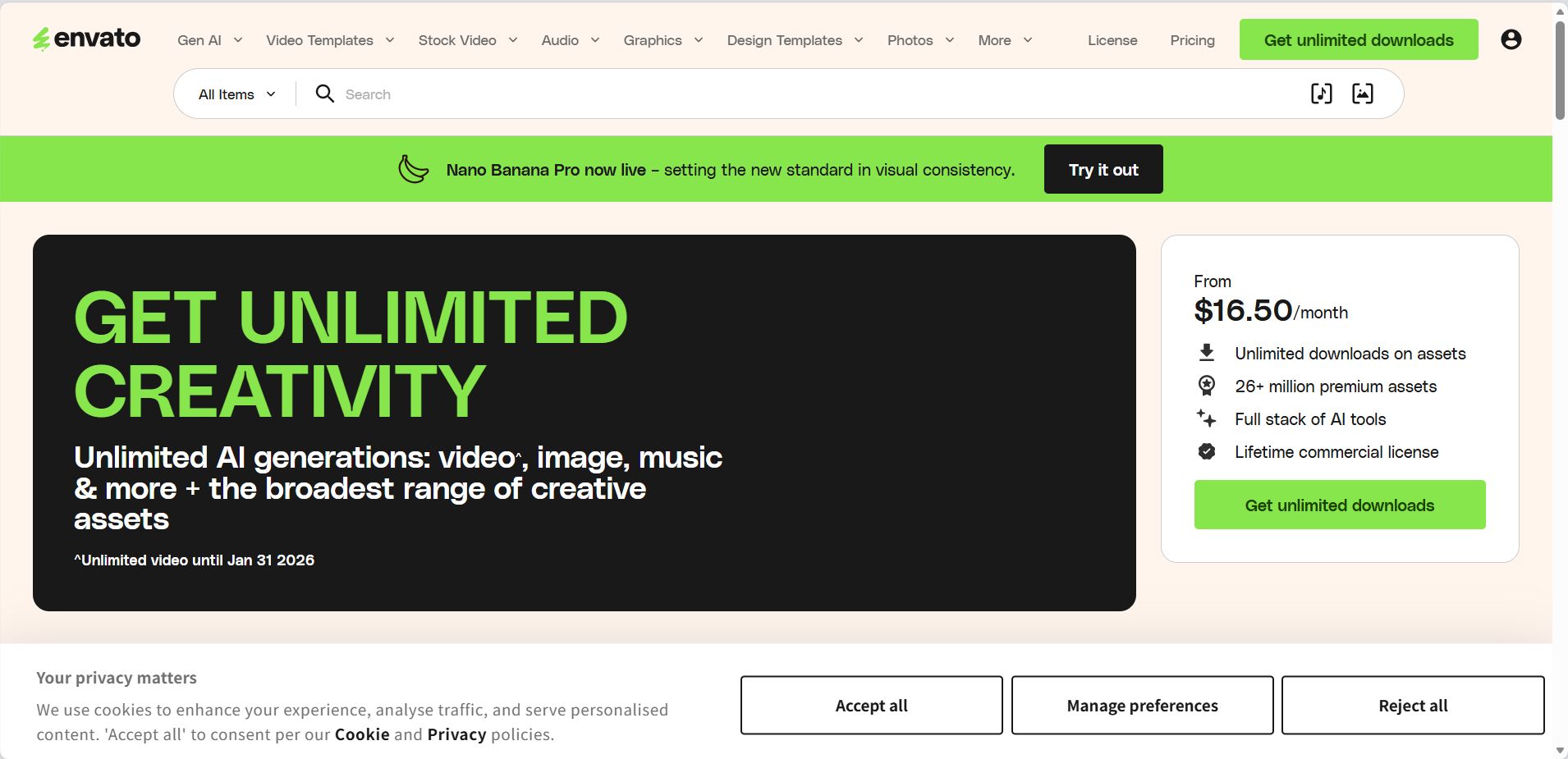如果说只能推荐一个国外网站,那必然是 Envato Market。它旗下的 VideoHive 是全球最大的视频模板交易平台之一,堪称“模板界的亚马逊”。 严格的审核机制和活跃的创作者社区,确保了模板的质量和更新速度。