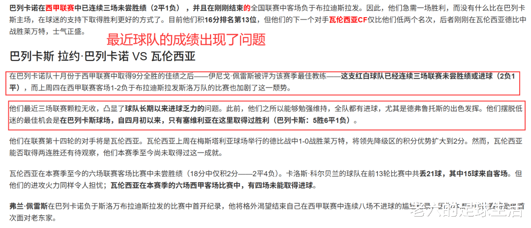 而且巴列卡诺是主场强势的球队,11月份客场比赛增多之后成绩自然而然就有所下滑了,为什么他们主场厉害呢,基本他们的主场都会整点小动作,比如没有为客队球迷设立专门区域,导致客队球迷无法入场。