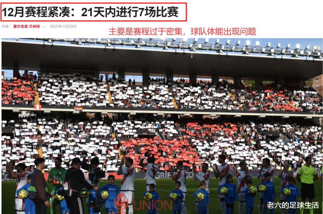 原因自然也很简单,就是他们12月份的赛程非常紧凑,21天要踢7场比赛,这比10月份多了2场,球员体能损耗更大,在本场赛前他们还刚在5天内踢了2场比赛。