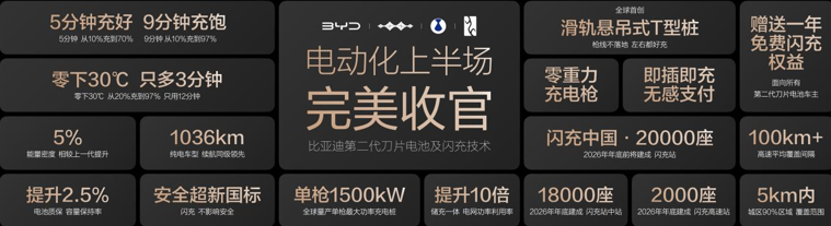 第二代刀片电池及闪充技术的发布,与“闪充中国”战略的落地,标志着 “充电慢”、“低温充电难”这两大世界性难题已被攻克,新能源汽车电动化的“上半场”至此完美收官。
