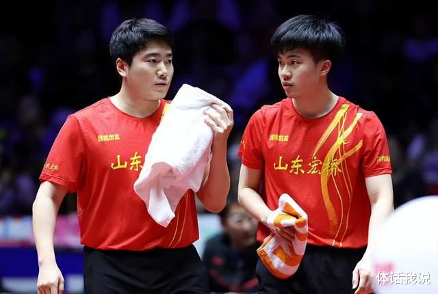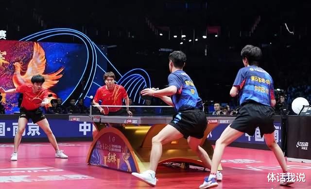 男团决赛首轮,梁靖崑和林昀儒组合迎战薛飞/刘冠成组合。这场较量从一开始就走势一边倒,薛飞和刘冠成仅在第一盘里拿到1分,两人已尽全力,但梁靖崑和林昀儒发挥更为出色,因此经过三盘交手,梁靖崑和林昀儒没有太费心力,以3-0轻松取胜(11-1、11-4、11-5)。第二盘,双方一单选手登场,王楚钦对阵向鹏。这场比赛,王楚钦和向鹏都发挥得可以,对于王楚钦来说,针对向鹏薄弱的反手位,他屡屡得分很有效果。当然了在接发球方面,王楚钦也吃了向鹏好几个发球,自身的侧身失误也有几个,不过双方实力还是存在一定差距,因此经过四盘酣战,王楚钦以3-1击败向鹏(11-7、7-11、11-7、11-8),为山东魏桥拿下关键一分,助队伍总比分2-0领先。