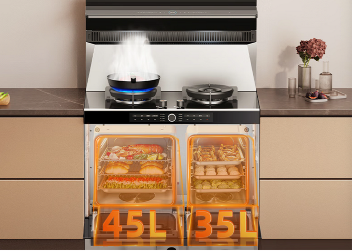 一些头部品牌的蒸烤性能也有保障,买回来绝对不鸡肋。还是拿火星人ET50BC系列集成灶举例,它的左右独立蒸烤箱三面排布了加热管+风扇+底部蒸汽发生盘,蒸得快、烤得嫩、炸得健康,制作各种美食都不在话下。再加上这款集成灶颜值在线,整个家居氛围都跟着加分。