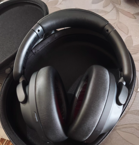 佩戴体验:这款耳机是轻量化设计 + 专利耳套,日常通勤戴 4 小时不闷耳,250g 的机身重量挂颈无负担,搭配贴肤级蛋白皮耳套,贴合耳廓不压耳,头梁可伸缩且韧性强,支持 180° 双向旋转折叠,不管是外出还是日常使用都是不占空间的