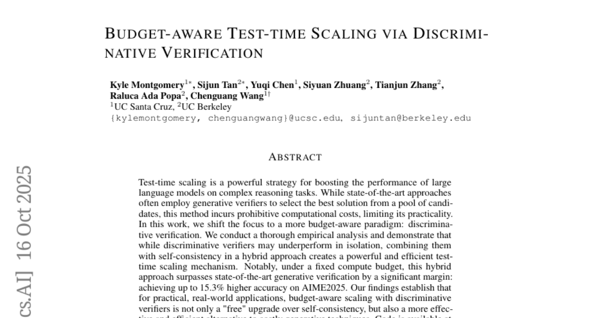 然而,研究团队发现了一个令人意外的现象:当你的预算有限时,雇佣一个"快速判断员"可能比请一群"深度思考专家"更明智。这就是他们提出的"判别式验证"方法的核心思想。