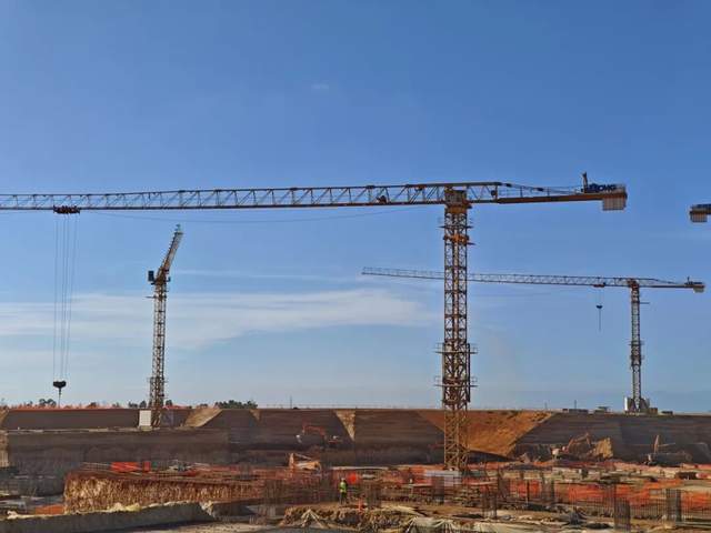 在哈桑二世大体育场施工现场,徐工塔式起重机、800吨级履带起重机、越野轮胎吊组成高空作业集群,凭借卓越性能与稳定表现,成为场馆建设的主力担当。