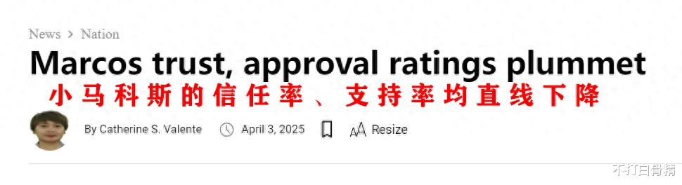《马尼拉时报》4月3日引用最新民调称,小马科斯的支持率和信任率降至其任职以来的最低水平,其支持率从33%下降到 19%,信任率跌到了14%。不支持率却达到 57%。