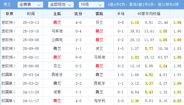 核心优劣势:优势是传控体系成熟,中前场创造力强,替补席上的韦霍斯特高空争顶能力突出,可作为破解密集防守的后手;劣势是曾出现领先后专注度不足的问题,9 月首循环就曾在领先情况下被波兰逼平,且弗林蓬伤缺可能导致右路防守出现空当