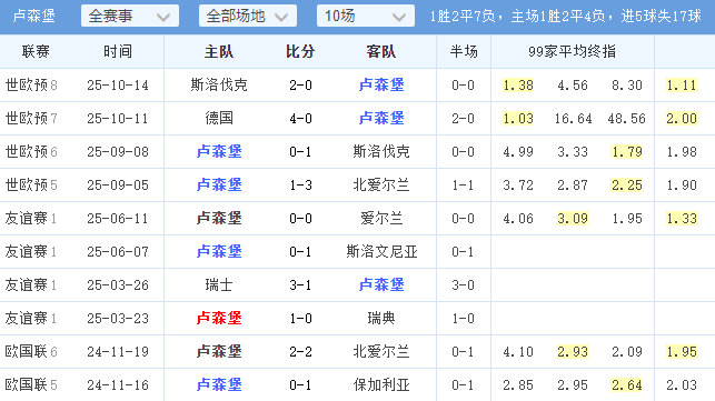 近期状态:近 10 场比赛仅 1 胜 2 平 7 负,世预赛场均仅进 0.25 球、失 2.5 球;主场近 10 场也仅 1 胜,场均失球达 2 个,攻防两端全面拉胯