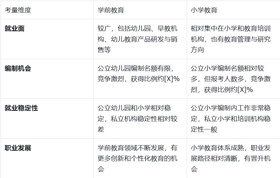 分析2:担心所选专业的就业面狭窄,未来职业发展受限,想了解学前教育和小学教育在就业市场上的不同需求和机会。