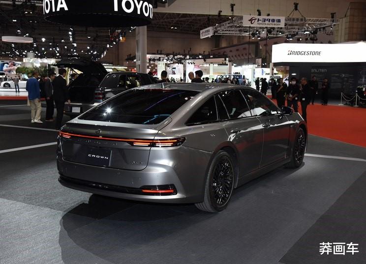 在东京车展首发的皇冠Sedan车型,其为一款中大型三厢轿跑车,该车外观采用了大尺寸的垂直格栅中网,配合镀铬装饰显得十分霸气。车头两侧设计了导流槽,能够提升空气动力学表现。新车采用了细长的大灯和贯穿式的LED灯带,科技感十足。