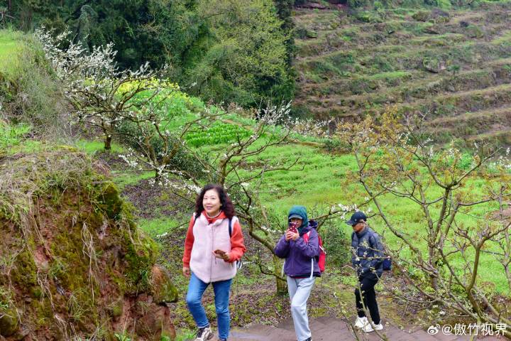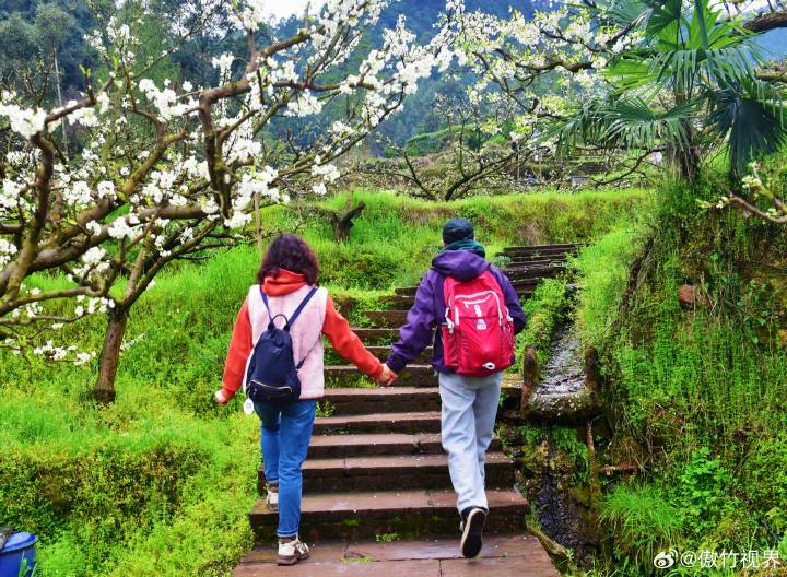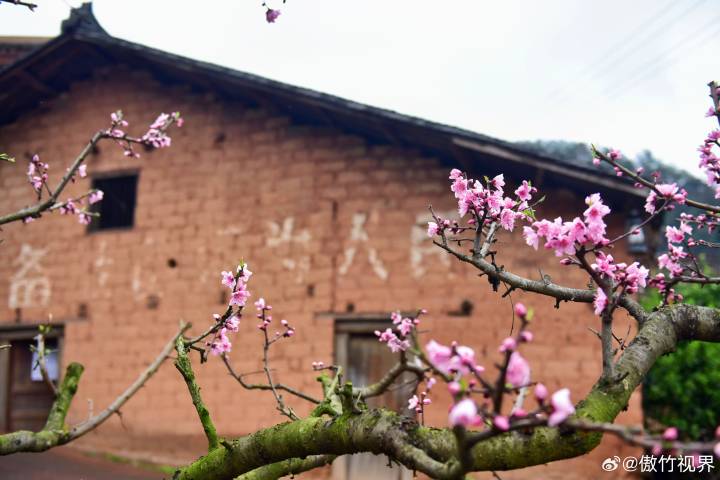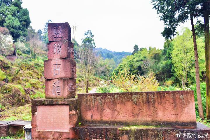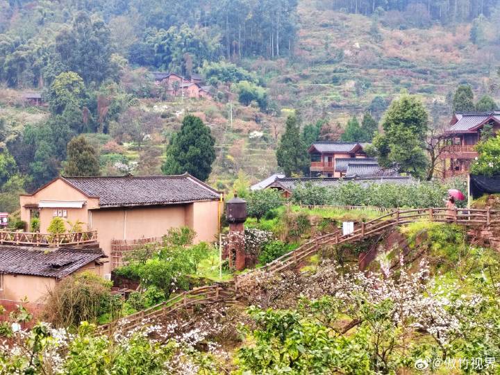 三月十五号,在春雨淋沥的清晨,走进如今的丹棱幸福古村,爬坡上坎,穿行丘陵沟壑、在还算平整的红石板路上寻觅往事,两旁的梨花、李花、桃花布满了丘陵溪谷半坡上,春季的乡村花香浓郁,花丛中掩映的农舍土屋上炊烟渺渺。
