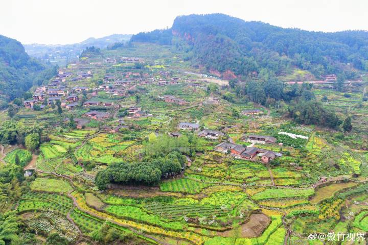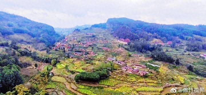 古村于浅丘陵之上,山地、梯田相互交错,层层叠叠的花儿在春色之中争奇斗艳、竞相展放。整个古村落坐落于海拔800米的山上,依山而建,面河而立,形成了“山水林田路院”一体的村落格局。