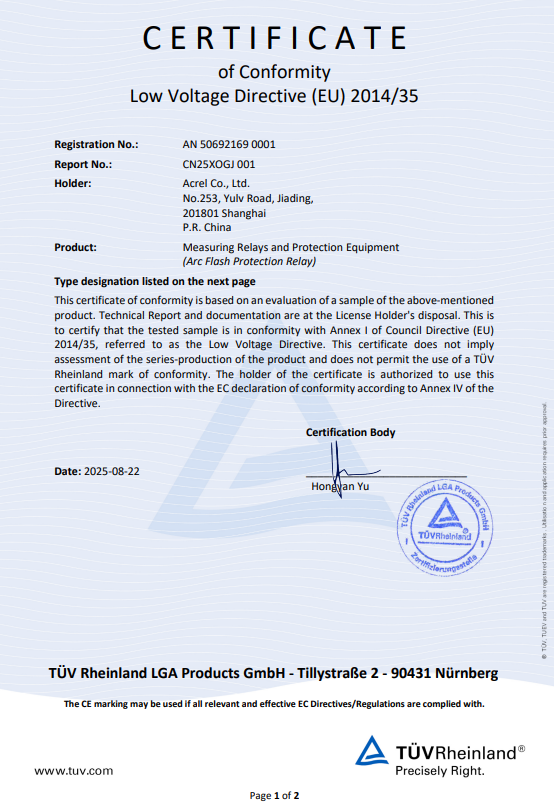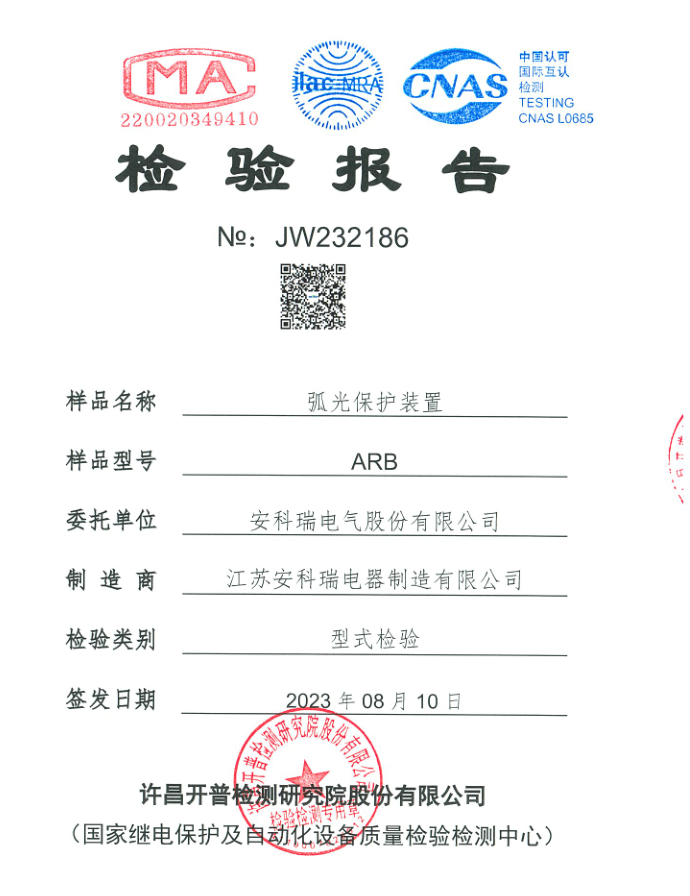 安科瑞 ARB 系列弧光保护装置通过多项国家及国际权威检测与认证,产品性能符合高标准要求,品质经得起市场检验: