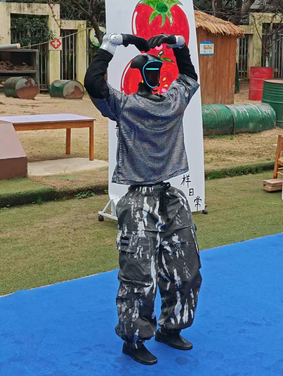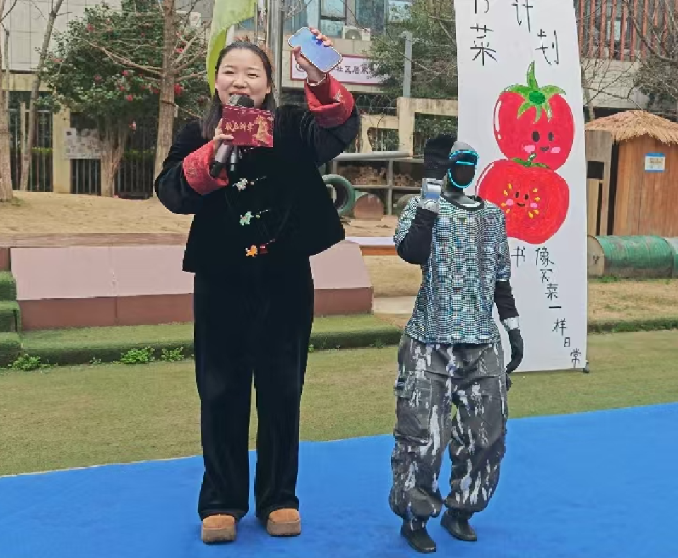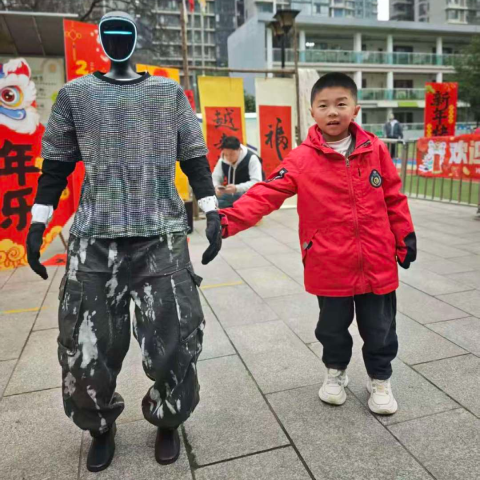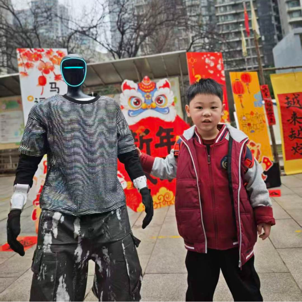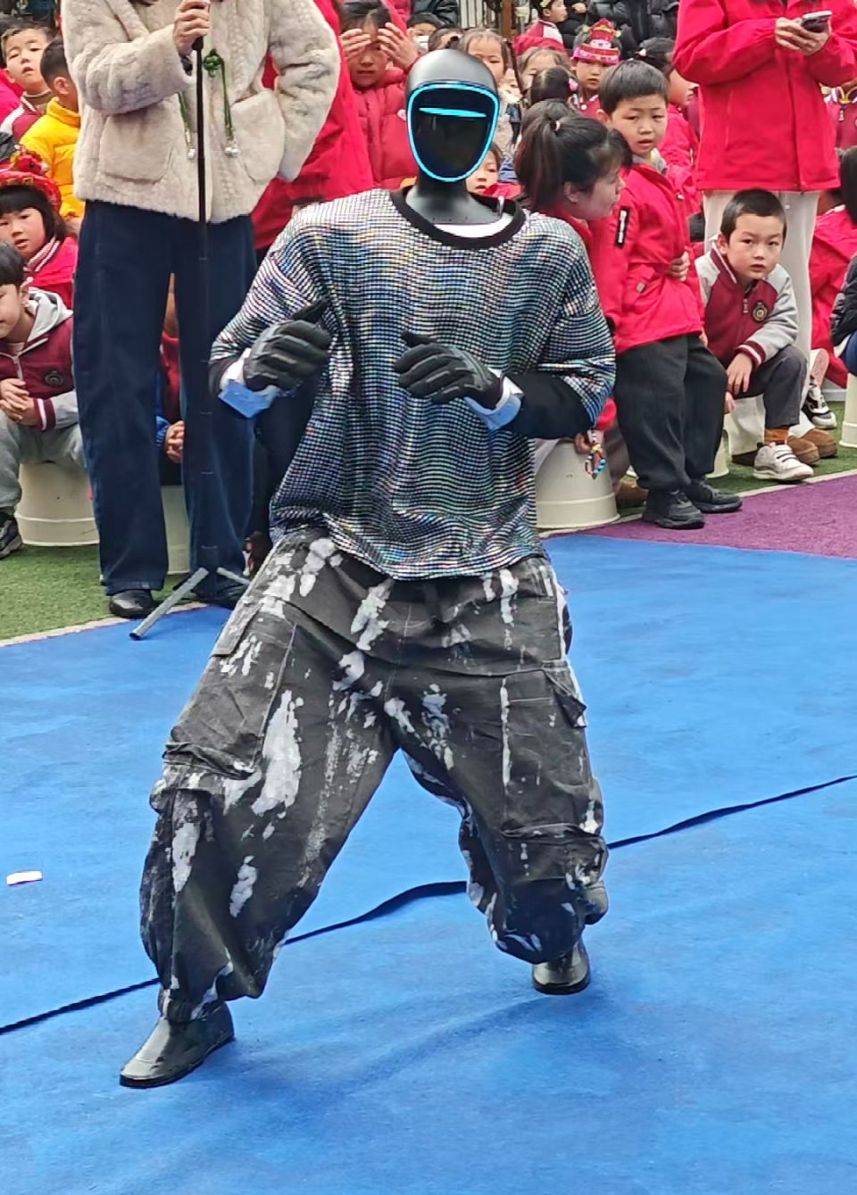开学第一天,校园里来了位“神秘嘉宾”,戴着未来感面罩的机器人舞者,在蓝色舞台上活力开跳!动感节奏、帅气pose,惹得小朋友们阵阵欢呼。用科技与童趣碰撞的开场,给新学期注入满满的仪式感与惊喜!