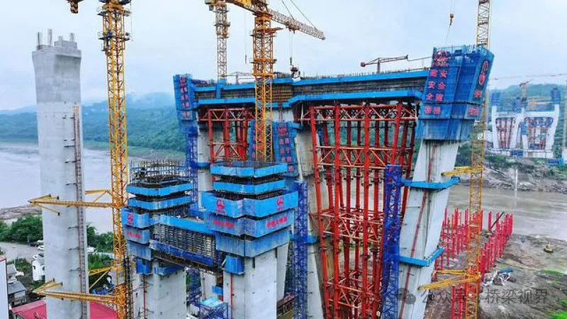 渝万高铁石沱长江大桥主塔下横梁完成首次浇筑