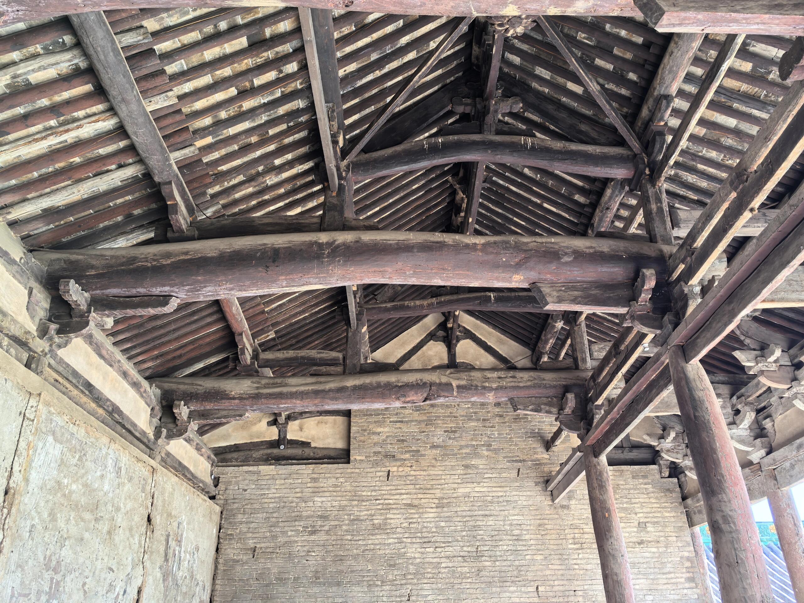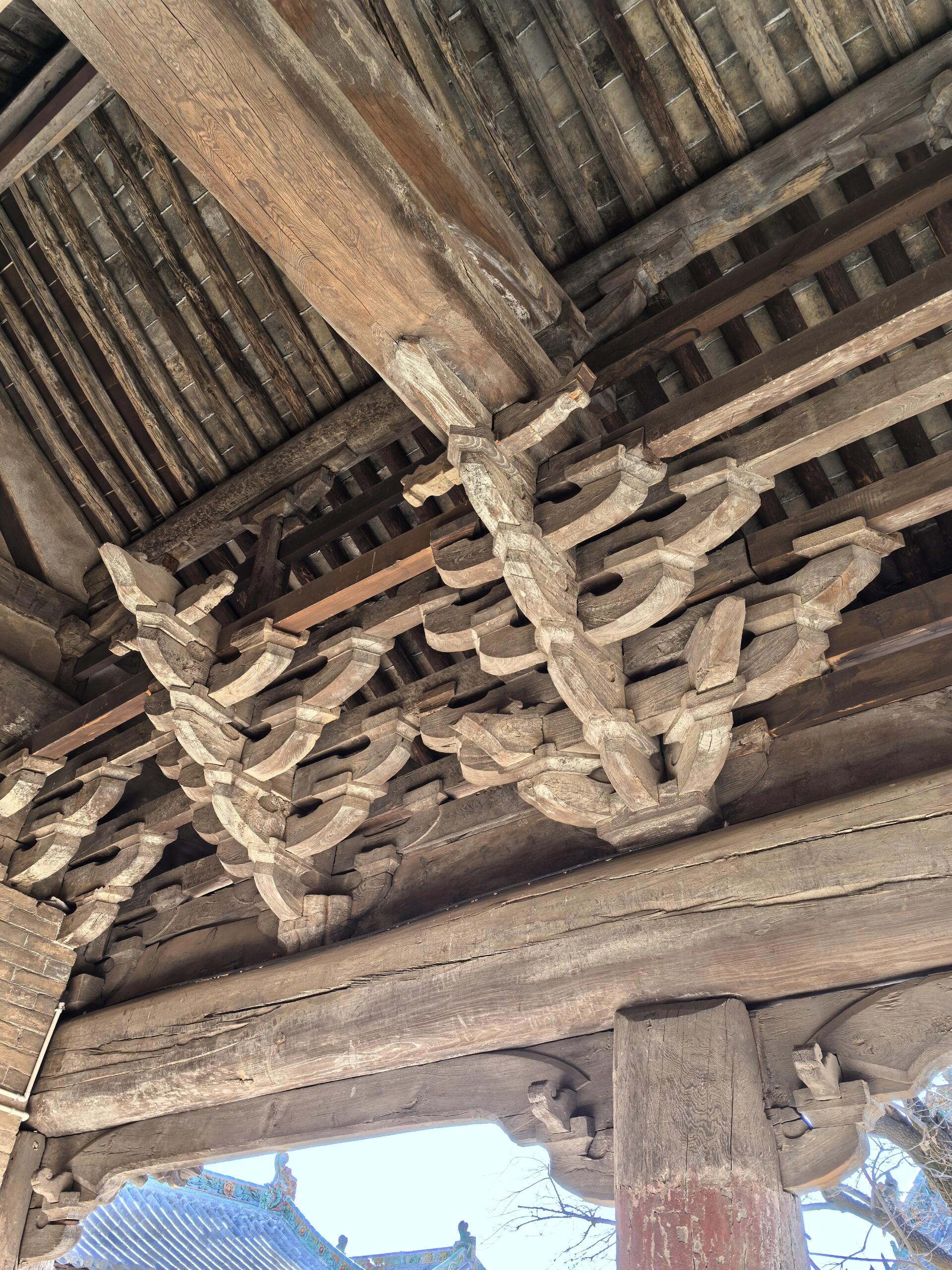 两道山门均为明代建筑,采用悬山顶,琉璃瓦剪边,斗拱繁复精美。一道山门面阔三间,柱头斗拱五踩重昂,每一处斗拱的构造,都体现出明代木构建筑独特的风格和工艺水平,让人不禁感叹古代工匠的高超技艺。