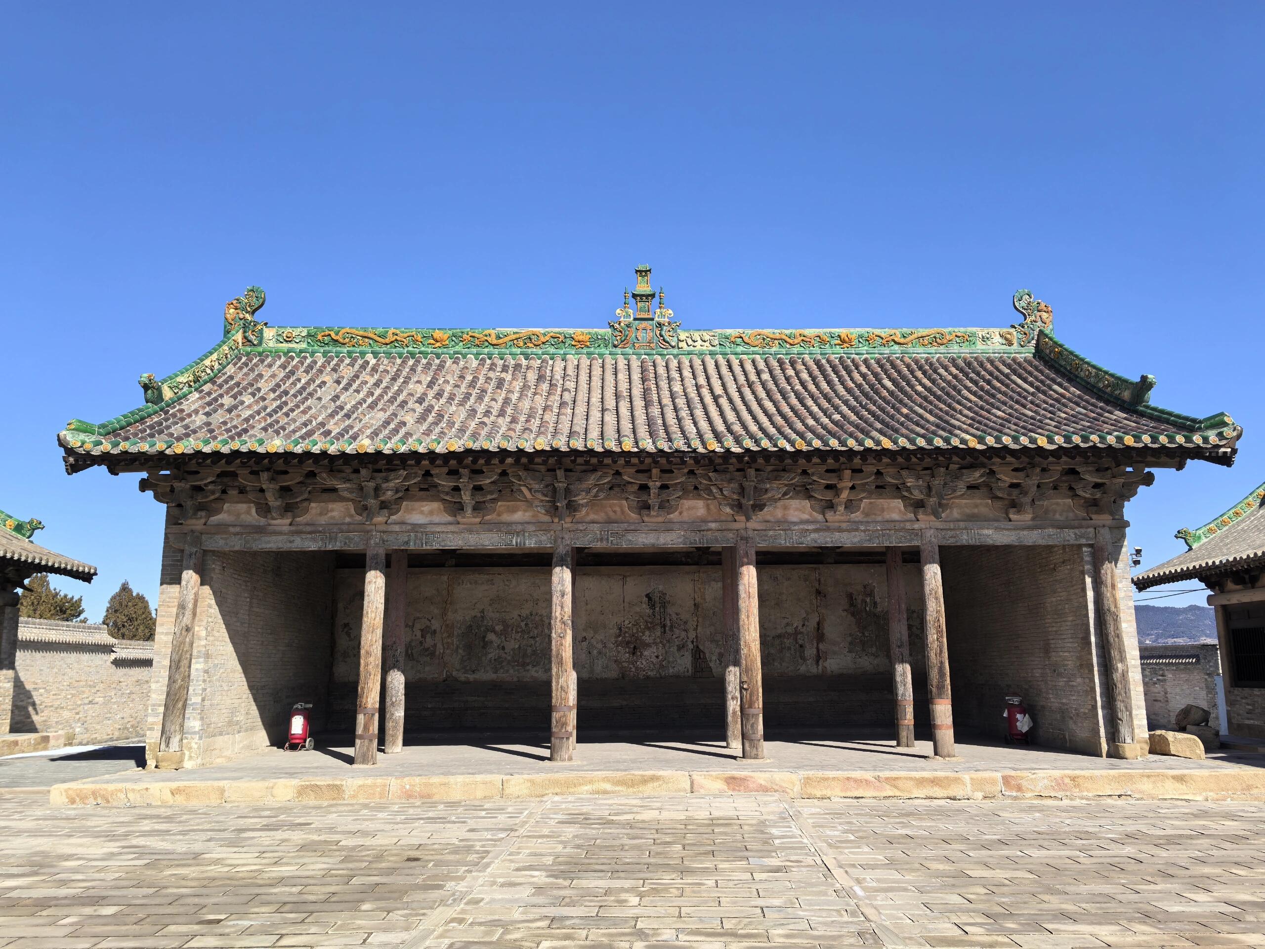 后宫同样为元代建筑,面阔五间,斗拱四铺作双昂,与主殿在风格上相互呼应。后宫在庙内祭祀活动中占据着重要地位,曾经承载着无数的祭祀仪式和人们对水神的虔诚祈愿。
