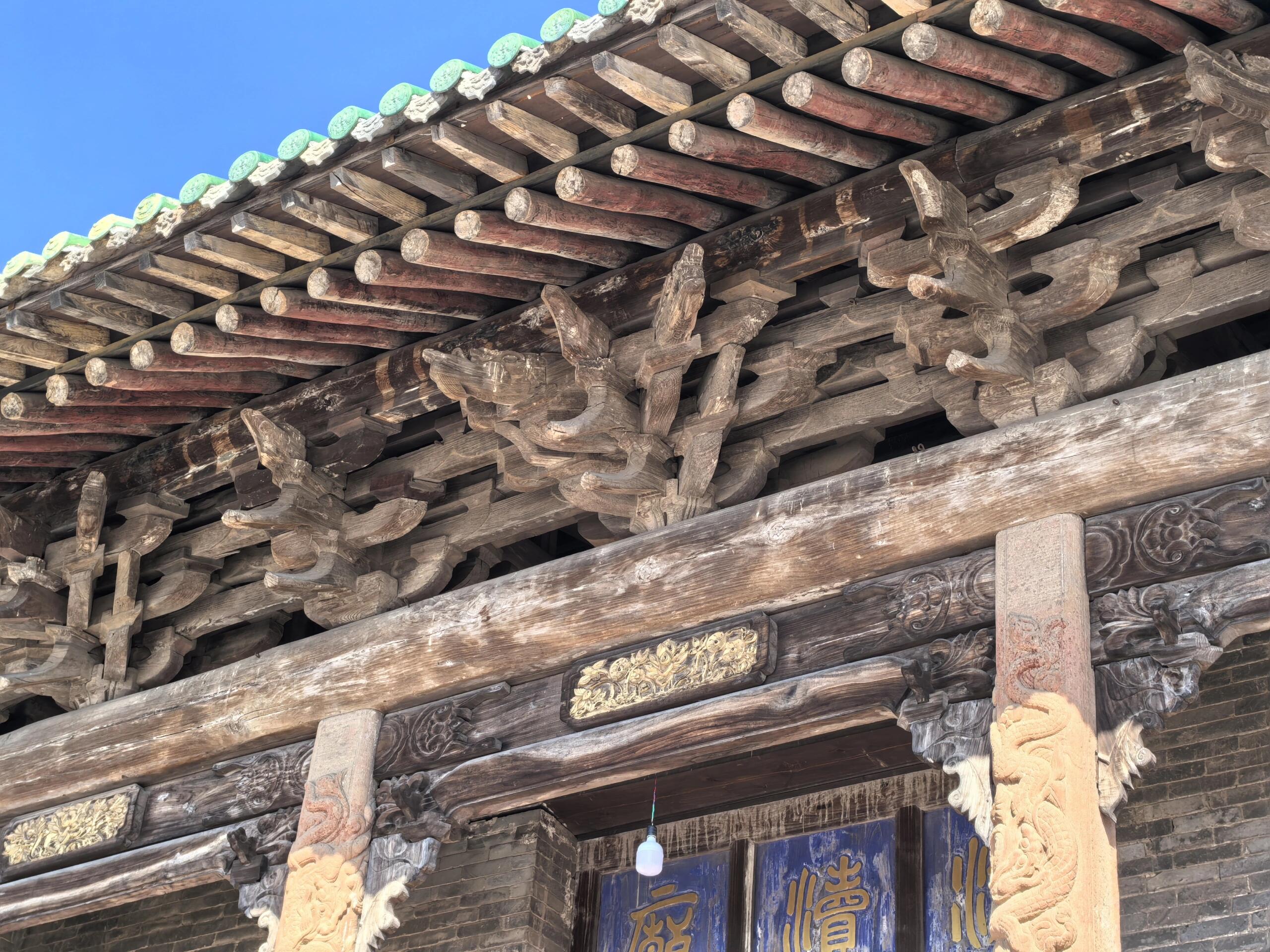 建南济渎庙的建筑细节无不体现着古代匠人的智慧与精湛技艺。山门前的方形雕龙石柱,雕刻工艺精湛,龙纹栩栩如生,仿佛随时都会腾空而起。元代木构件的榫卯工艺更是让人叹为观止,不用一钉一铆,木构件之间严丝合缝,牢固无比,展现出古代木工技艺的极高水平。此外,庙宇中还留存有宋代《营造法式》风格的勾栏,其简洁而规整的造型,为研究宋代建筑风格提供了珍贵的实物例证。琉璃剪边和悬鱼惹草等装饰,不仅增添了建筑的美观性,更反映出当时的审美观念和工艺特色。