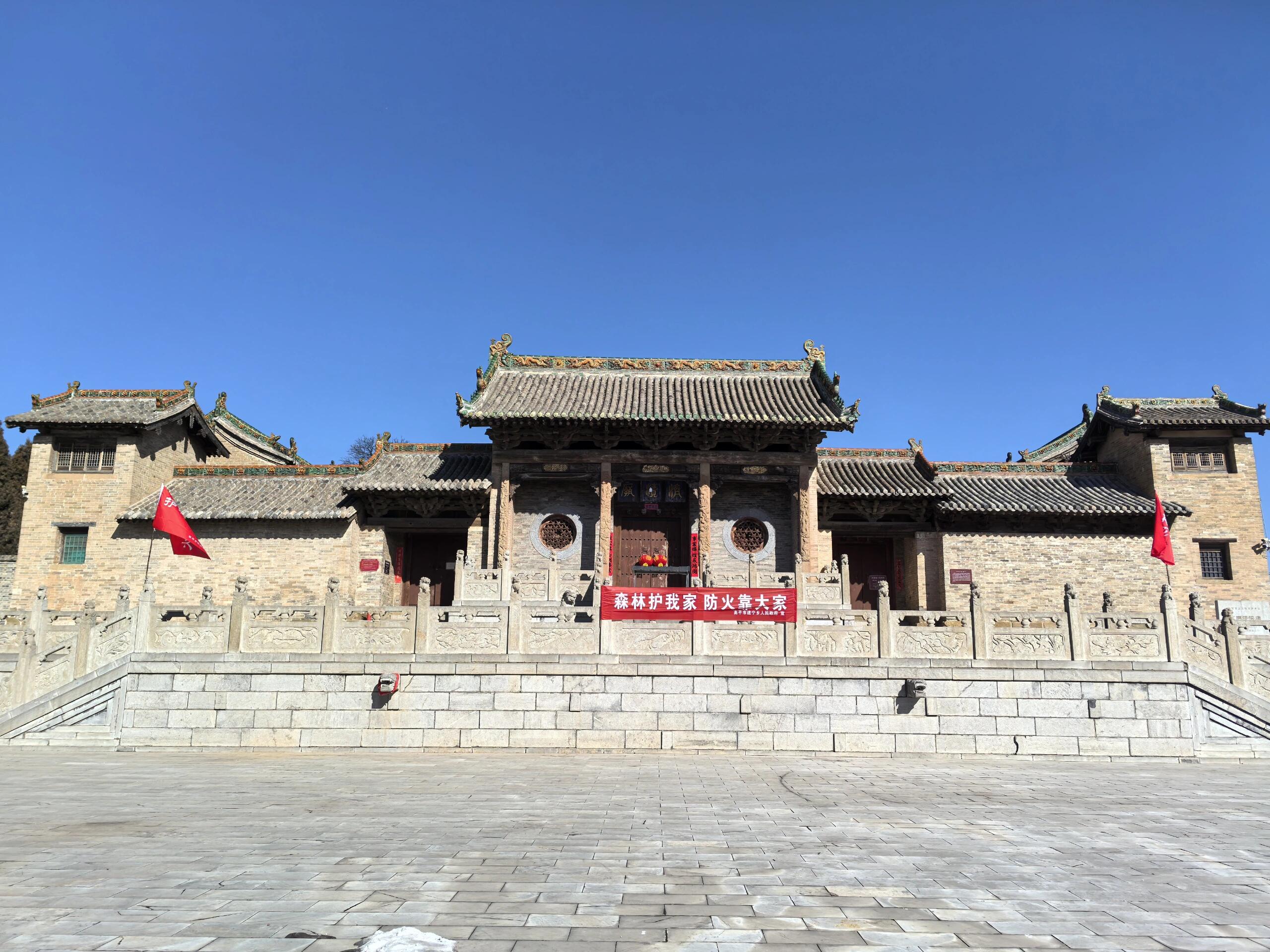 庙宇采用三进院落的布局,沿着中轴线,依次排列着一道山门、二道山门、献殿遗址、济渎殿和后宫,两侧还配有钟鼓楼、配殿、耳殿等建筑,整体布局严格遵循传统祭祀建筑 “前朝后寝” 的规制,彰显出古代祭祀文化的庄重与严谨。