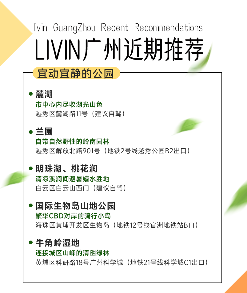 我们可以在麓湖公园骑上单车让风拂过耳畔,把舒缓平日的生活压力;又或者在海珠湖畔的草坪上组队飞盘,享受运动带来的多巴胺快乐;