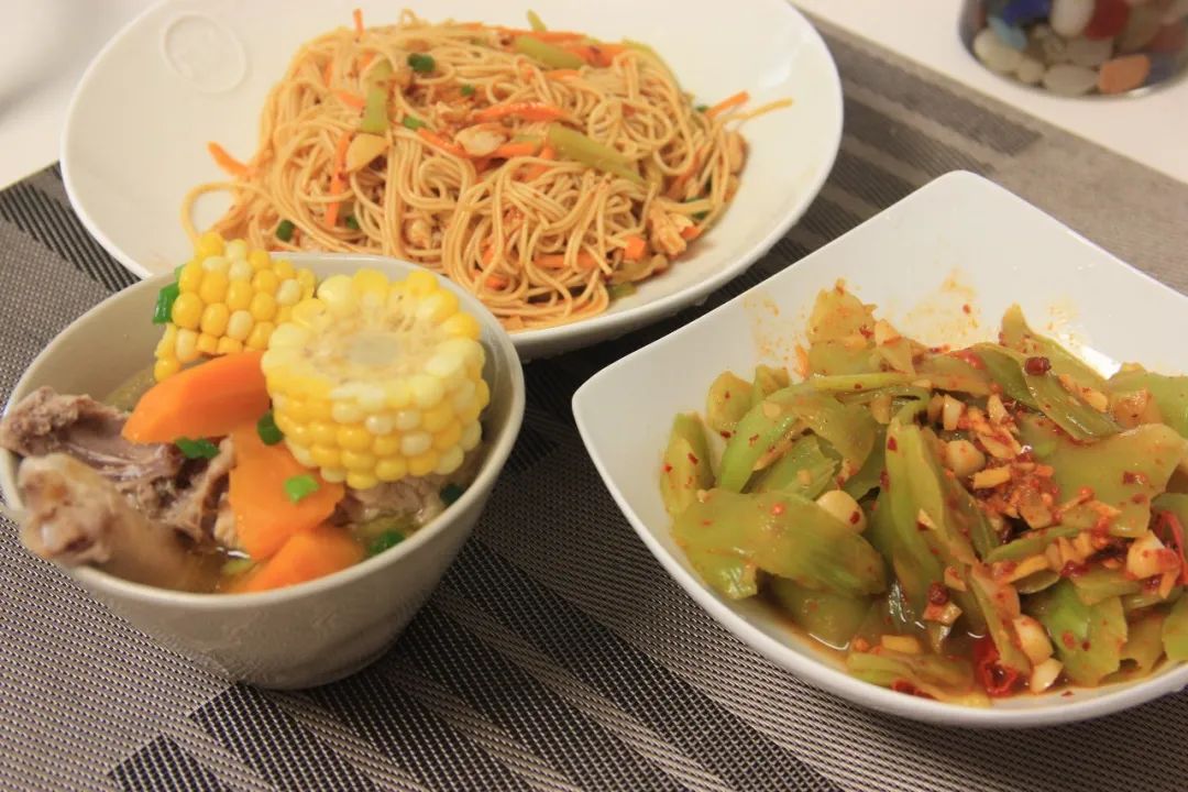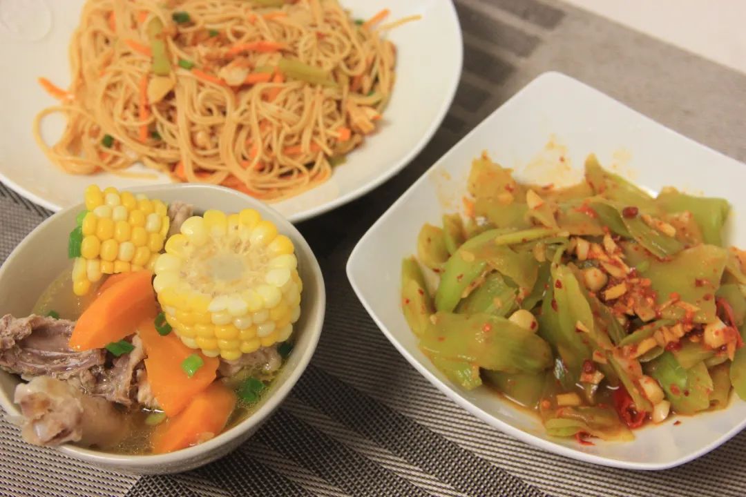 一碗汤,一盘凉面,还有个凉拌莴笋。