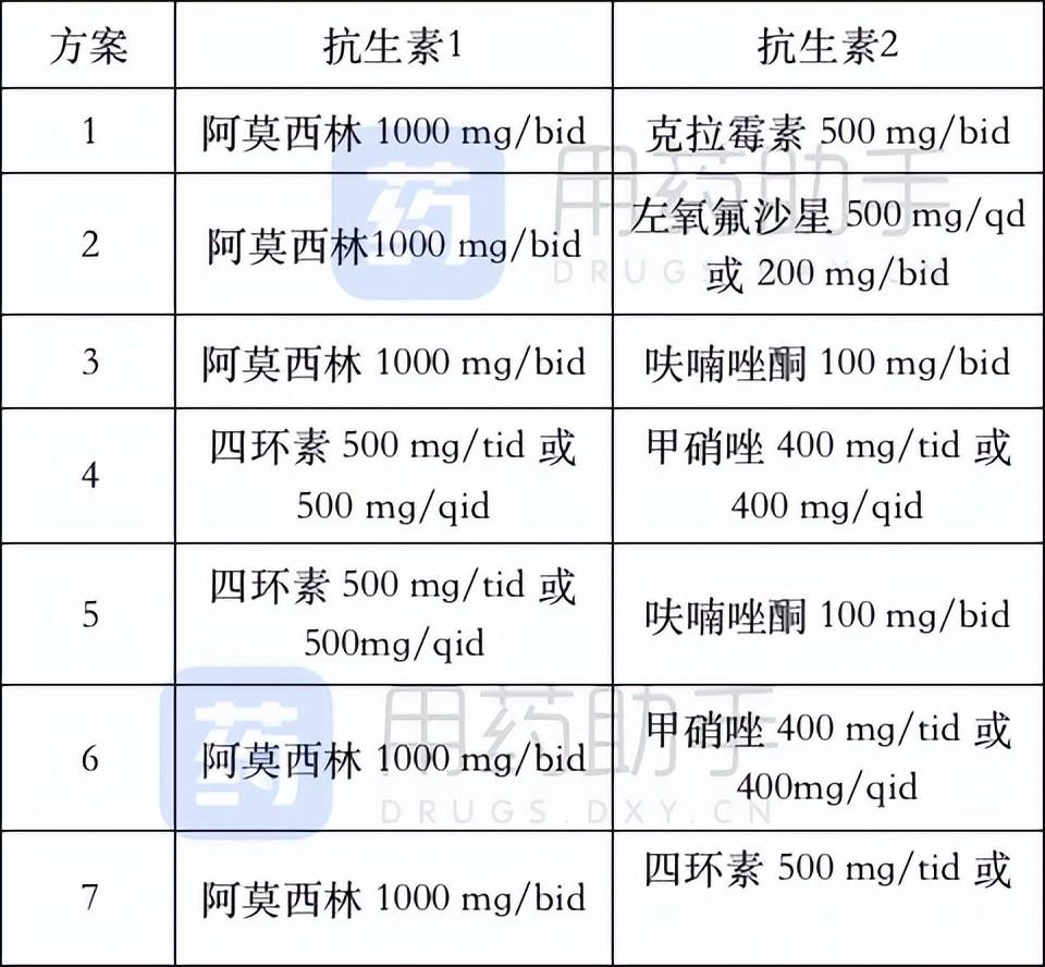 首选方案:“含铋剂的四联疗法” ——吃四种药,连吃14天,每天两次。两种抗生素 + 一种拉唑类抑酸药 + 一种铋剂。常用的抗生素组合见下表,具体选哪种,要由医生决定,一般餐后吃。