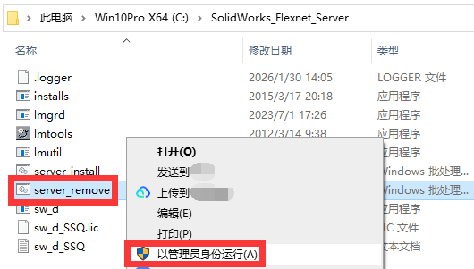 2、找到【server_remove】文件,鼠标右键,点击【以管理员身份运行】。