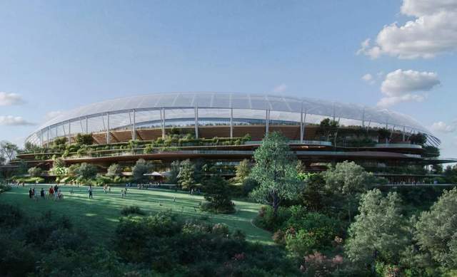 目前公布的效果图显示,体育场将设有蜿蜒的步道、绿植环绕的露台,以及一个装有圆形天窗的透明屋顶,轻盈覆盖于建筑之上。