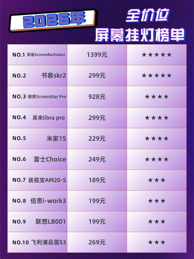 游戏挂灯什么牌子好?根据2026年最新公开资料,结合护眼性能、技术实力、用户口碑及专业评测,游戏挂灯(即屏幕挂灯)中表现突出的品牌主要集中在以下几个:书客、米家、Yeelight、ROG、VENIDER、明基、孩视宝、雷士