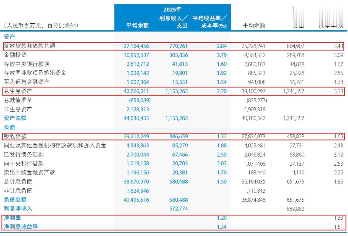 在支出部分,我注意到建行的利润是在减值损失同比多提126.17亿的基础上获得的。如果我们比较拨备前利润,同比增速将达到1.7%。在成本收入比方面,建行2025年的成本收入比为29.15%,比2024年的29.44%下降了0.29个百分点。