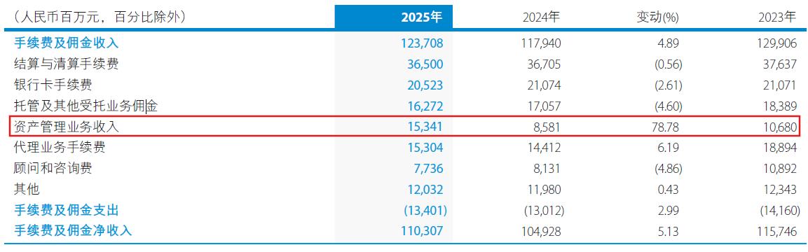 建行2025年手续费出现恢复性反弹,手续费收入明细如下图2所示: