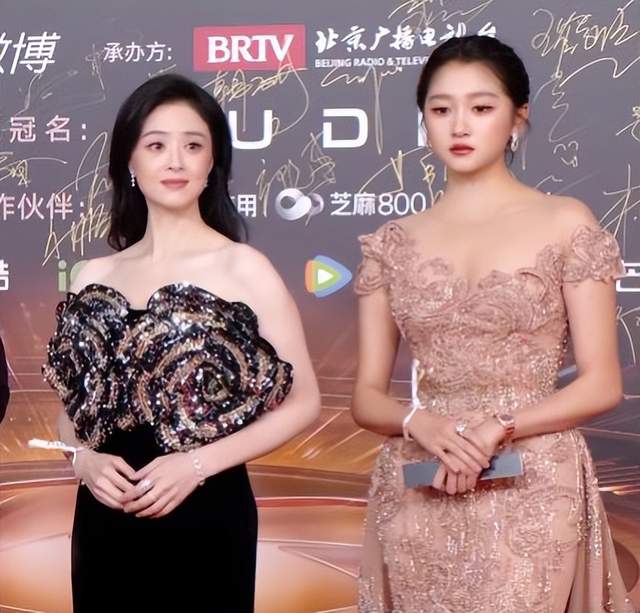 关晓彤身穿一些裸色花卉长裙,这件礼服是高定,只不过穿在关晓彤的身上把她衬托的很老气。众所周知,关晓彤身材最具看点的就是那双逆天大长腿。 但这条长裙把腿盖得严丝合缝,亮片又把上半身裹成反光板,头小肩宽的缺点被灯光放大,导致视觉上有些“胖”。