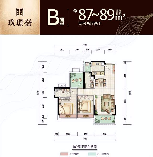 B户型(89㎡三房) 通过U型厨房与景观阳台的组合,使实用率达到83%。特别设计的3.6米开间客厅,搭配可分合的多功能房,满足年轻家庭成长性需求。