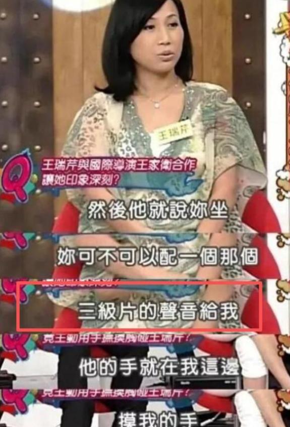 事件二:“拳头塞嘴”的变态骚扰! 这还不是最恶心的!一位叫王瑞芹的女配音员站出来控诉:当年给王家卫的“风月片”配音时,王大导演就在旁边,逼着她一边舔他的手指一边配音!最后甚至变态到要把整只拳头硬塞进她嘴里!这已经不是潜规则,是令人发指的性骚扰和侮辱!