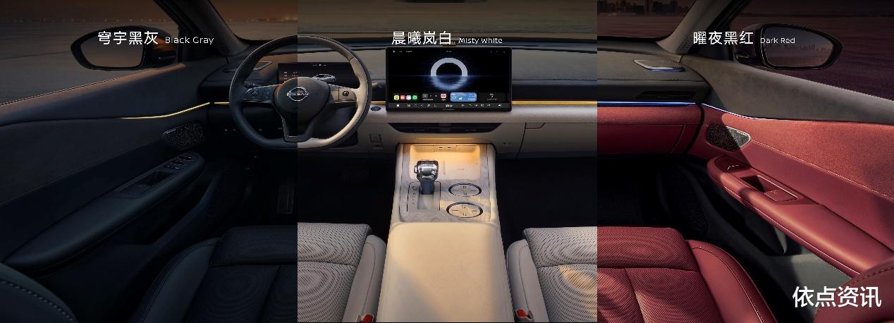 内饰设计以“移动智能家居”为理念,90%软包覆盖搭配同级唯一零甲醛健康座舱,提供晨曦岚白、穹宇黑灰、曜夜黑红三种配色选择。