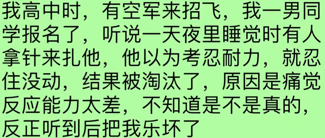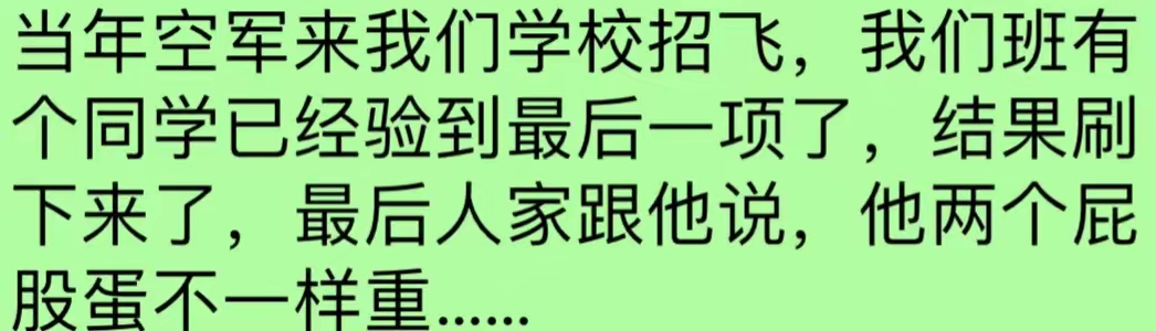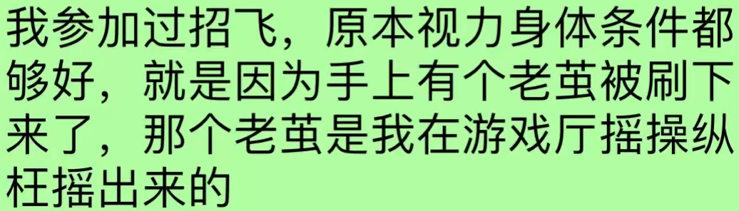 您瞧瞧我家这小子。上高中的时候,空军去他们学校选飞行员,那架势,我儿子是一路披荆斩棘,各项选拔都不在话下。可谁能想到,最后关头问了个身体受伤的问题,他傻乎乎地说锁骨受伤开过刀。哎呀呀,就这么一句话,好家伙,他那飞行的美梦“哗啦”一下碎一地,真是让人哭笑不得,可惜得要命哟!