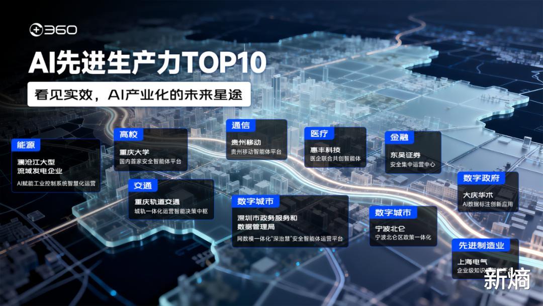 更值得关注的是,与这份榜单几乎同步浮出水面的,还有一份名为“AI先进生产力TOP10”的案例集。从高校、能源、金融到政务、交通、医疗,这十个案例像一张精心绘制的地图,全景式地展示了AI如何深入中国产业经济的毛细血管。
