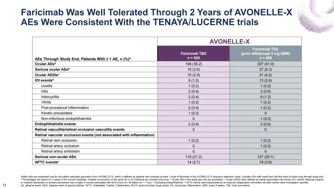 2.Veeral Sheth, et al. Four-Year Outcomes of Faricimab in nAMD: Safety and Efficacy Results From the AVONELLE-X Long-Term Extension Trial. EURETINA 2025. Presentation ID LB10.