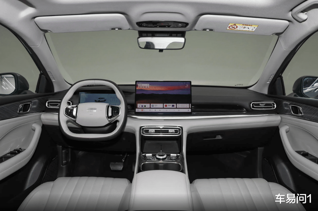 进入车内,星耀6的座舱整体呈现飞翼式的舒展设计,台面通过镀铬饰条和包覆面料的分层,形成了富有层次的台面结构,并提供了澄湖映雪白、苏堤暖棕、烟雨墨黛等三种配色。车内采用了大面积的软包面料,加上细节处的镀铬材质,增加了座舱内的豪华感。除了入门的自在版之外,区域版本均采用了10.25英寸液晶仪表与14.6英寸2K中控屏的组合。副仪表台区域保留了部分实体按键和旋钮,保证驾驶过程中的操作便捷性。怀挡式换挡杆的设计也进一步释放了中央扶手区的空间,该区域配备50W风冷无线快充和储物箱,方便了用户日常使用。