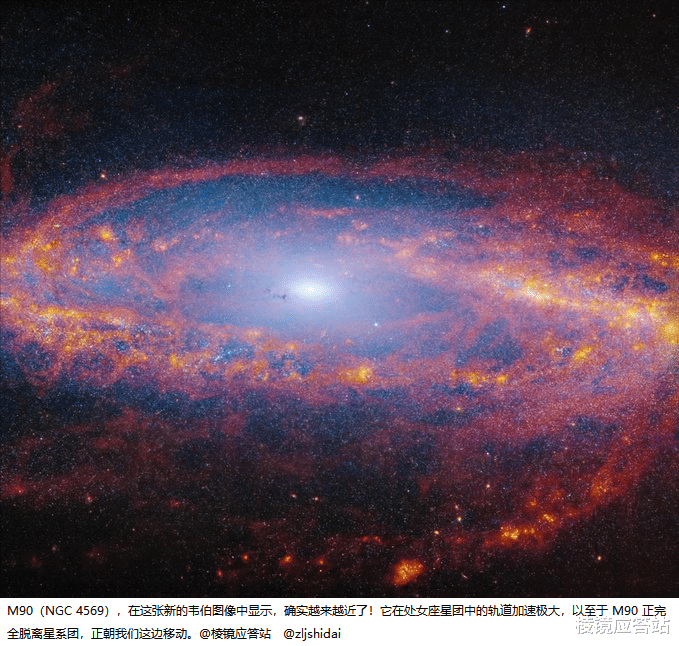 这可不是科幻,就是宇宙正在真实发生的奇景,2026年3月24号,NASA公布了韦布望远镜拍到的梅西耶90(M90)最新红外图像。