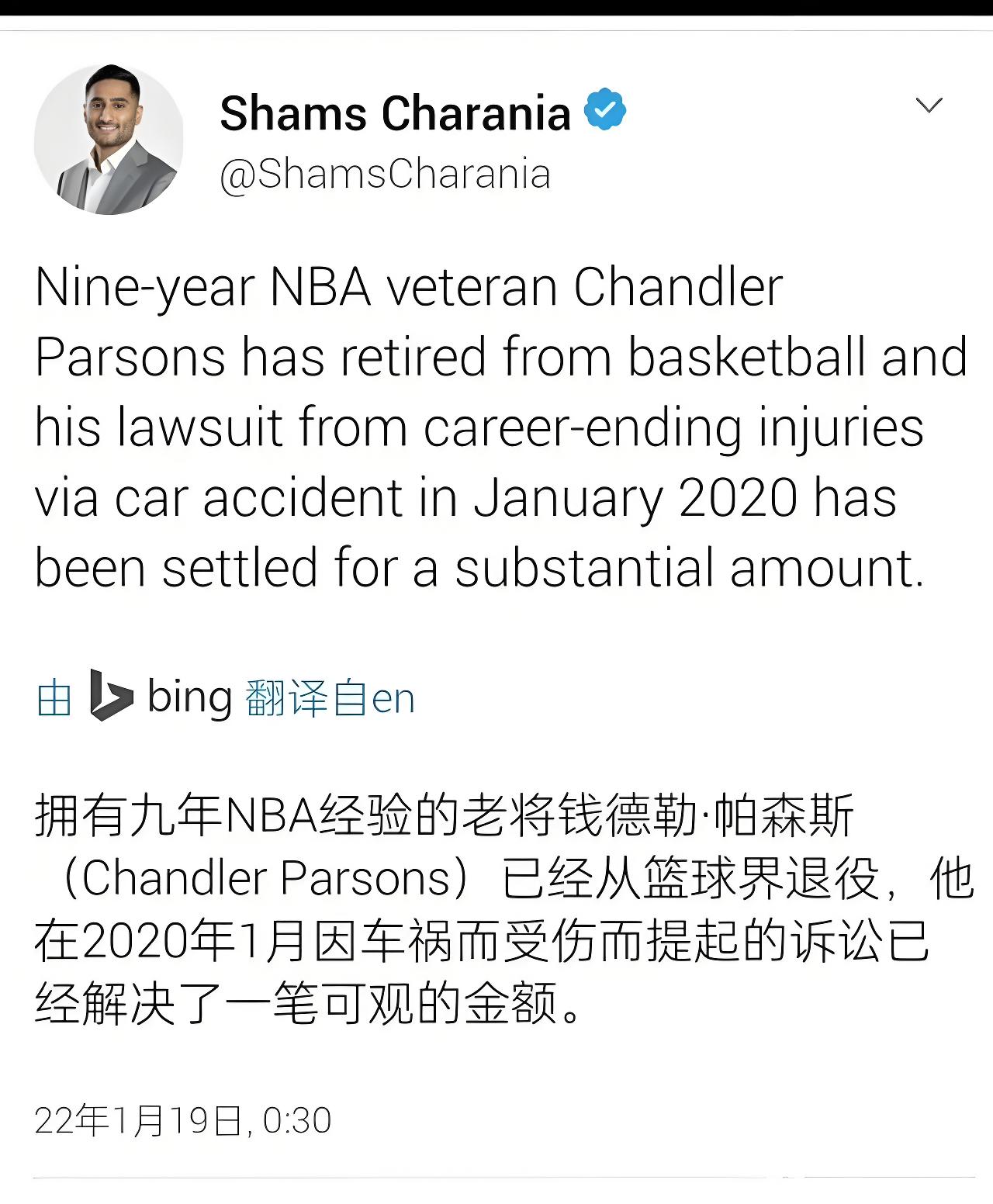经历伤病和绯闻后,帕森斯职业生涯在灰熊队走到尽头。灰熊队老板在忍无可忍下于2019年7月8日将他交易送到了老鹰队。来到老鹰后,他彻底失去了上场机会,大部分时间只能待在替补席上。2020年一次意外的车祸导致帕森斯遭遇了多项永久性伤害,再也无法回到球场上去,黯然退役。这位曾被寄予厚望的新星,未能兑现天赋,成为NBA历史上又一个令人惋惜的例子。