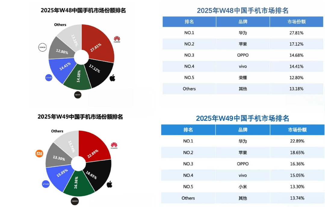 就在昨天(12月 11日),业内的数据显示,华为在2025年12月初凭借 Mate80系列的爆发式销售,连续两周超越苹果登顶中国手机市场份额榜首,#华为重夺中国手机市场份额第一 的话题也上热搜。