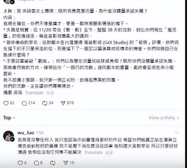事情的起点,来自一名自称台湾编剧的网民“吴洛”。