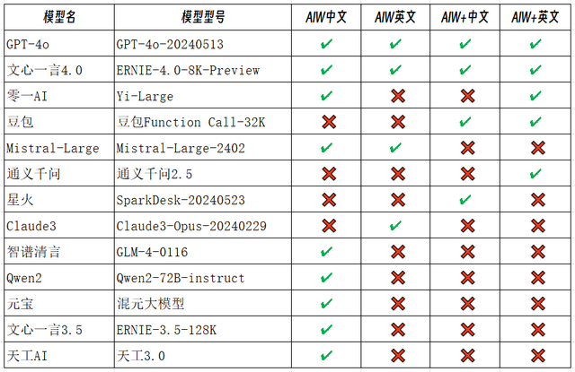 要吐槽一下天工3.0,不知道是模型的问题,还是本身天工AI就只准备做AI搜索。它的搜索我评测过,还不错。虽然拿到一分,但是AIW+中文推理问题,搜一下没答案就不回答了,唯一遇到不回答的AI。