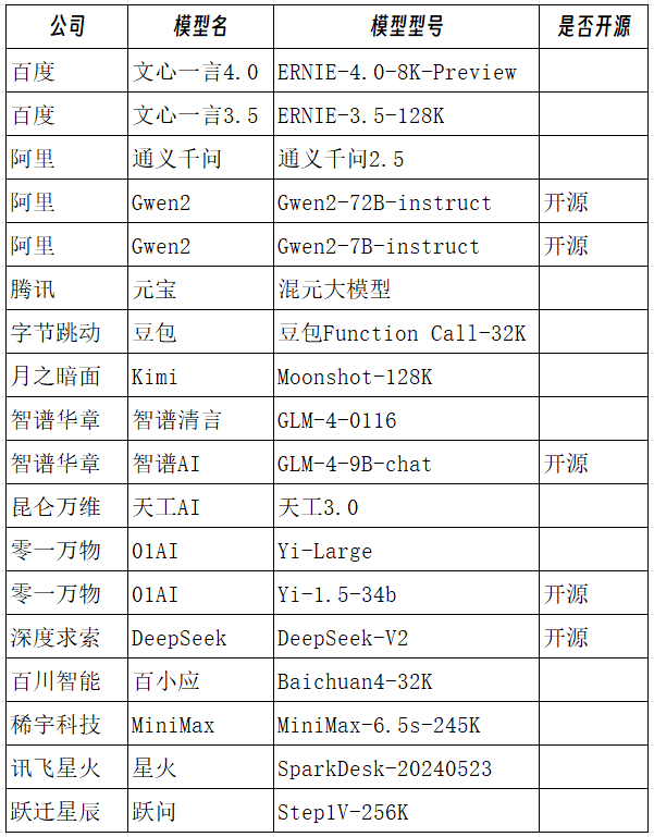 国内找了我能找到的十四个旗舰大语言模型。有最新面世的腾讯的混元大模型——元宝和百川智能的百小应,百度的文心一言4.0、阿里的通义千问2.5和其开源的Gwen2-72B等。